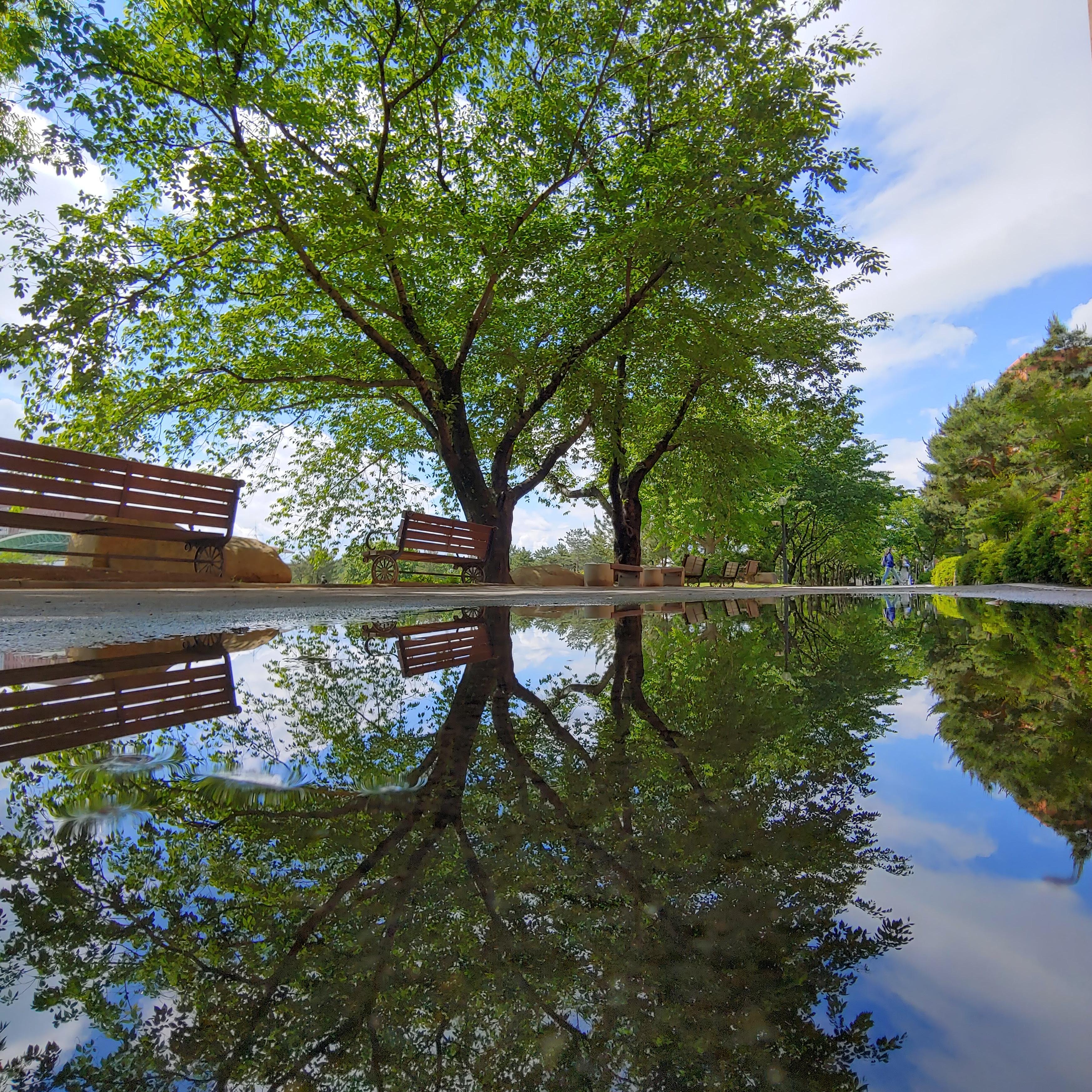 비온 후 잠깐 해가 떴을 때 찍은 사진.